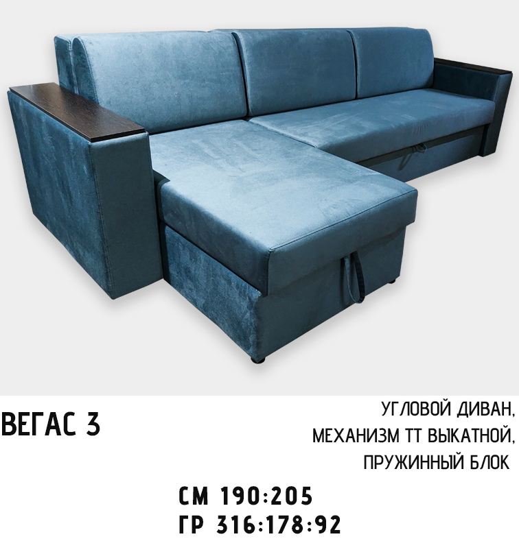 Погрузитесь в мир комфорта и уюта с угловым диваном Вегас 3! Идеальный выбор для тех, кто ценит практичность и стиль одновременно. Механизм трансформации "тройной выкатной" обеспечивает ровное и просторное спальное место размером 190х205 см, а пружинный блок типа "Боннель" подарит приятные ощущения во время отдыха. Мягкие подлокотники создают дополнительный комфорт при использовании, а встроенный короб для хранения поможет хранить подушки или покрывала аккуратно скрытыми. Удобно, стильно и функционально – ваш идеальный уголок релакса уже ждет вас!
