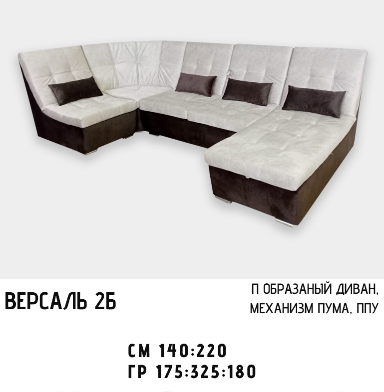 Откройте для себя элегантность и комфорт углового модульного дивана "Версаль 2Б" с механизмом трансформации «Пума». Благодаря качественным наполнителям из ППУ, этот большой диван станет вашим любимым местом отдыха. Габариты модели (325x175 см), а также просторное спальное место размером 140х220 см обеспечат максимум удобства и уюта! Создайте атмосферу настоящего домашнего очага уже сегодня!