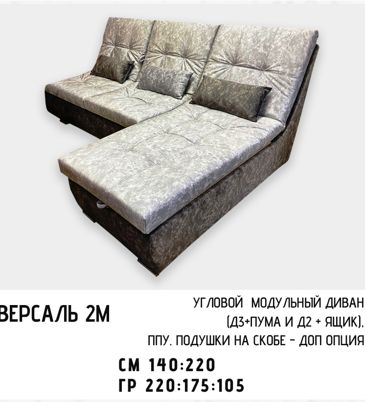 Модульный угловой диван «Версаль 2М» от бренда Дюарт — идеальный выбор для комфортного отдыха! При компактных размерах (габариты всего 220х175 см), он трансформируется в уютное спальное место размером 140х220 см, предоставляя максимум удобства благодаря наполнению из качественного ППУ. Удобная конфигурация Д3 + механизм пума позволяет оптимально использовать пространство даже самой небольшой гостиной. Идеальный баланс стиля, комфорта и функциональности прямо у вас дома!