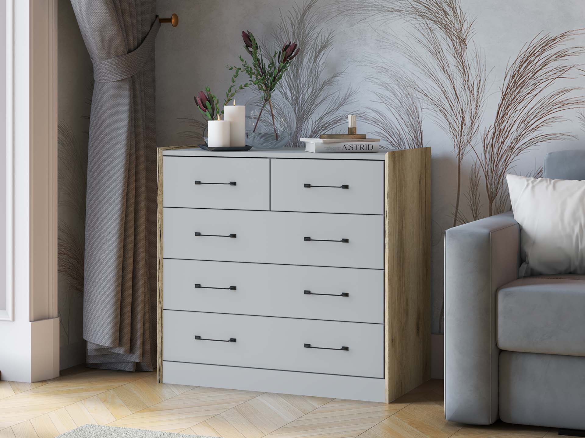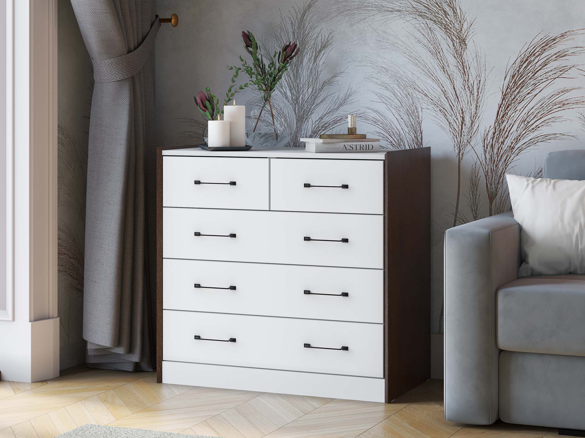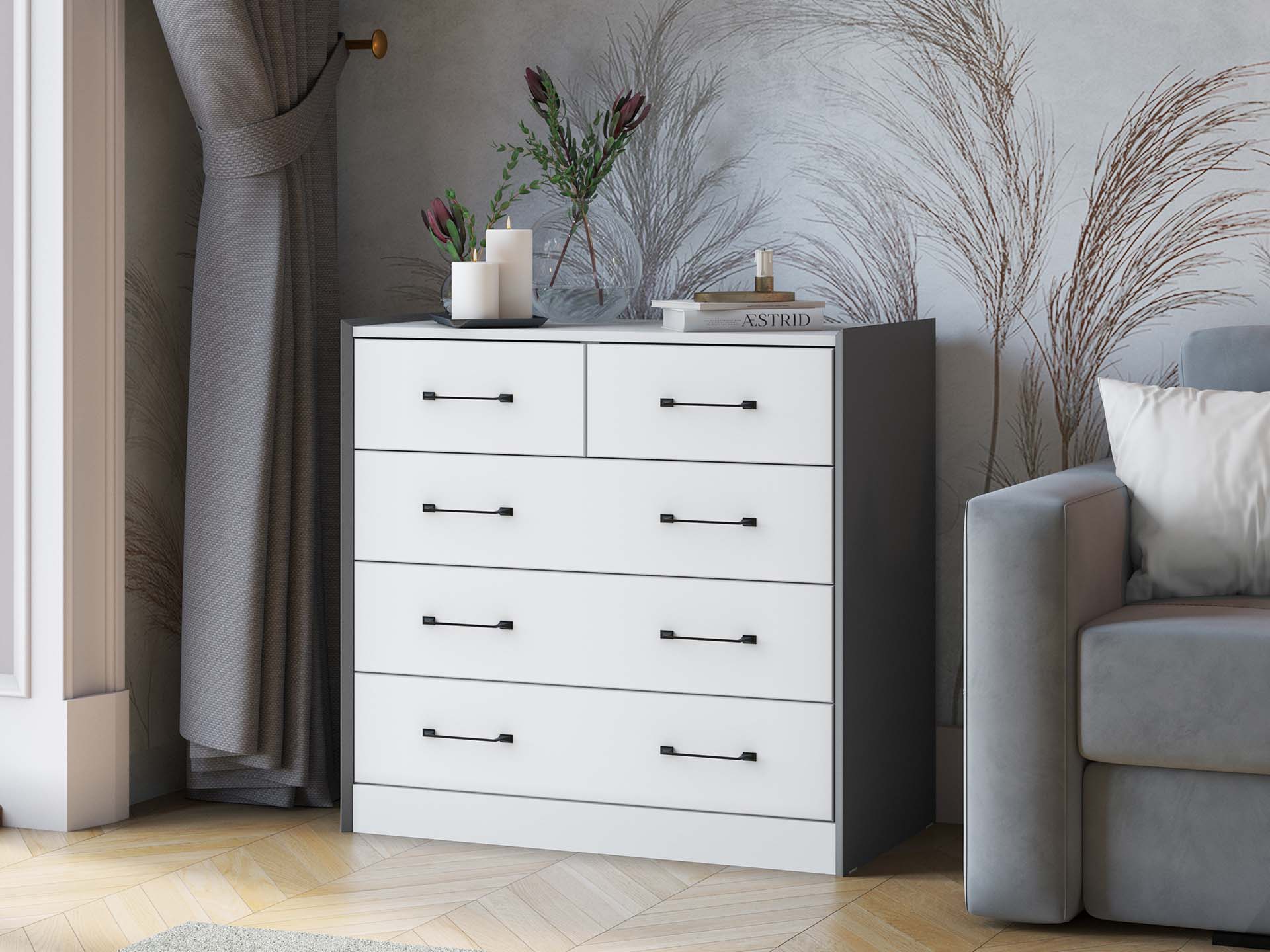 Вариант-1: ЛДСП Белый с тиснением «Древесные поры»/ЛДСП Графит Серый/ МДФ ПВХ Белый Снег
