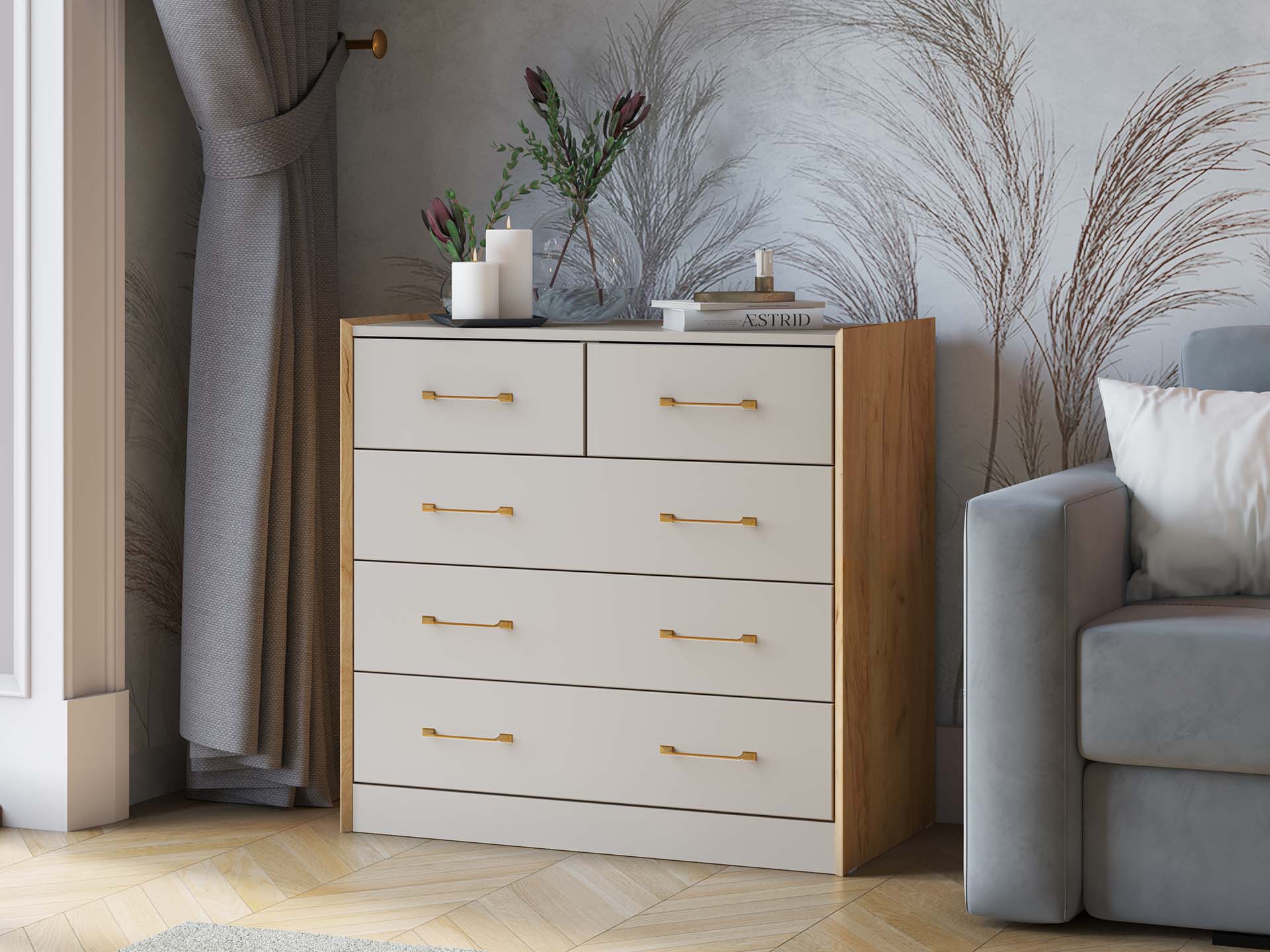 Вариант-3: ЛДСП Дуб Крафт Золотой/ ЛДСП Кашемир/ МДФ ПВХ Сантьяго Софт