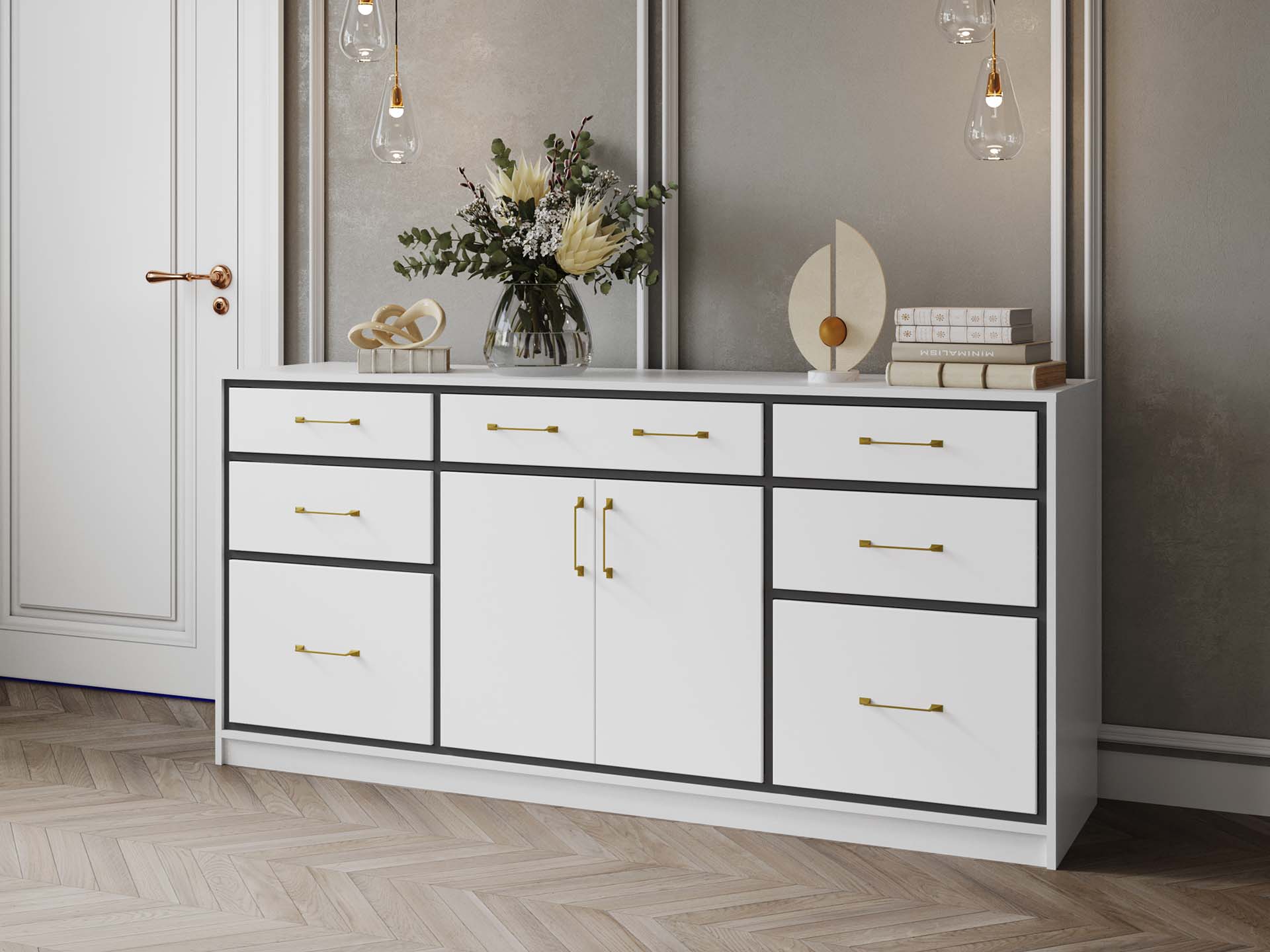 Вариант-15: ЛДСП Белый с тиснением «Древесные поры»/ МДФ ПВХ Белый снег Акцентная кромка — Графит Серый