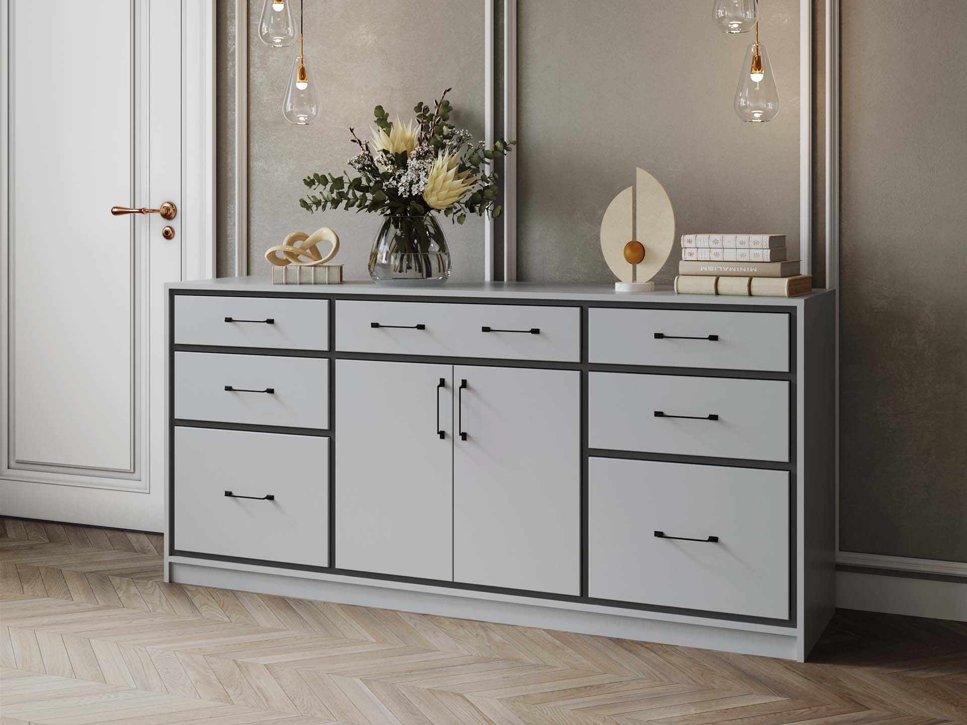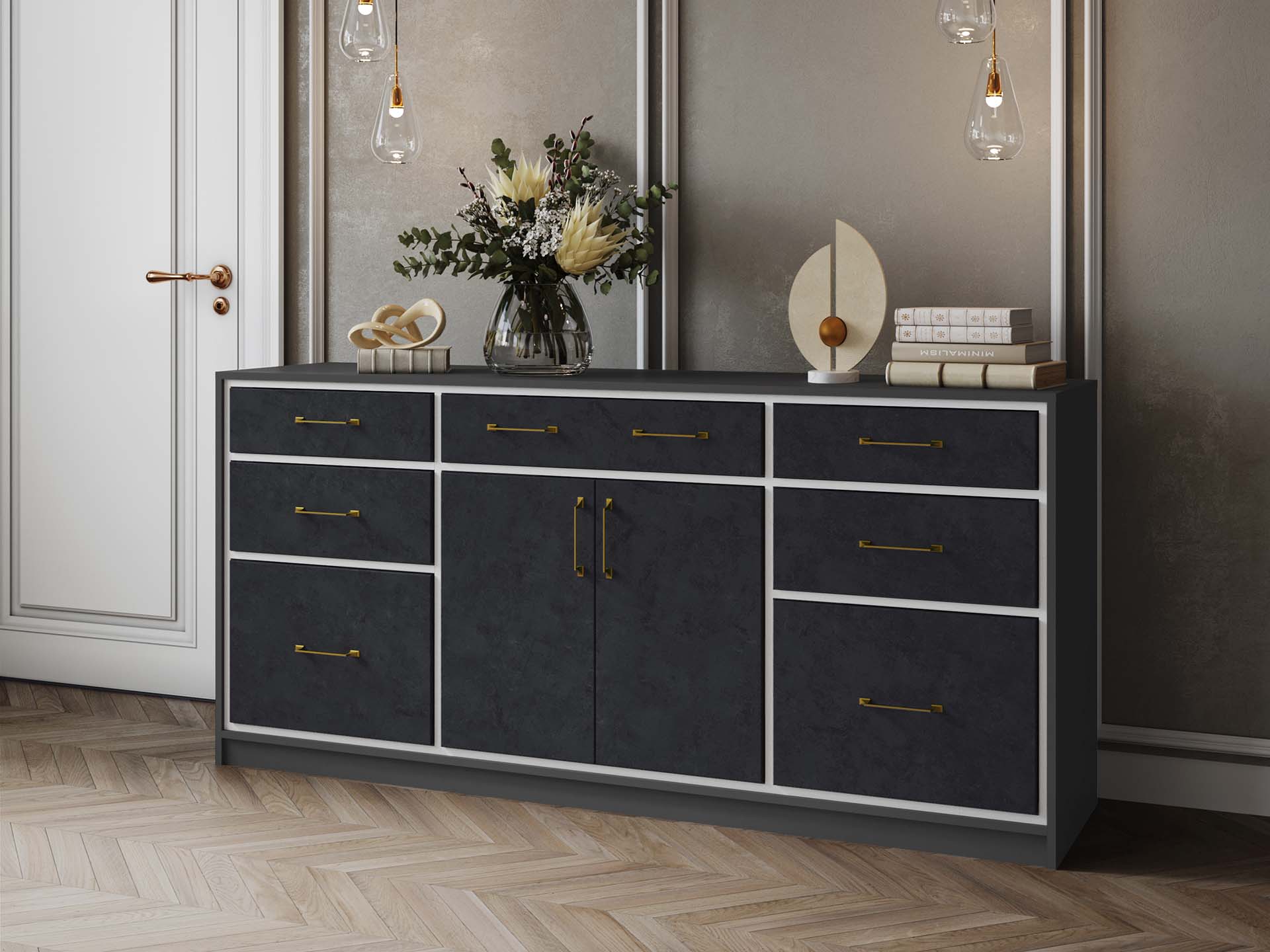Вариант-9: ЛДСП Кашемир/МДФ ПВХ Сантьяго Софт Акцентная кромка — Графит Серый