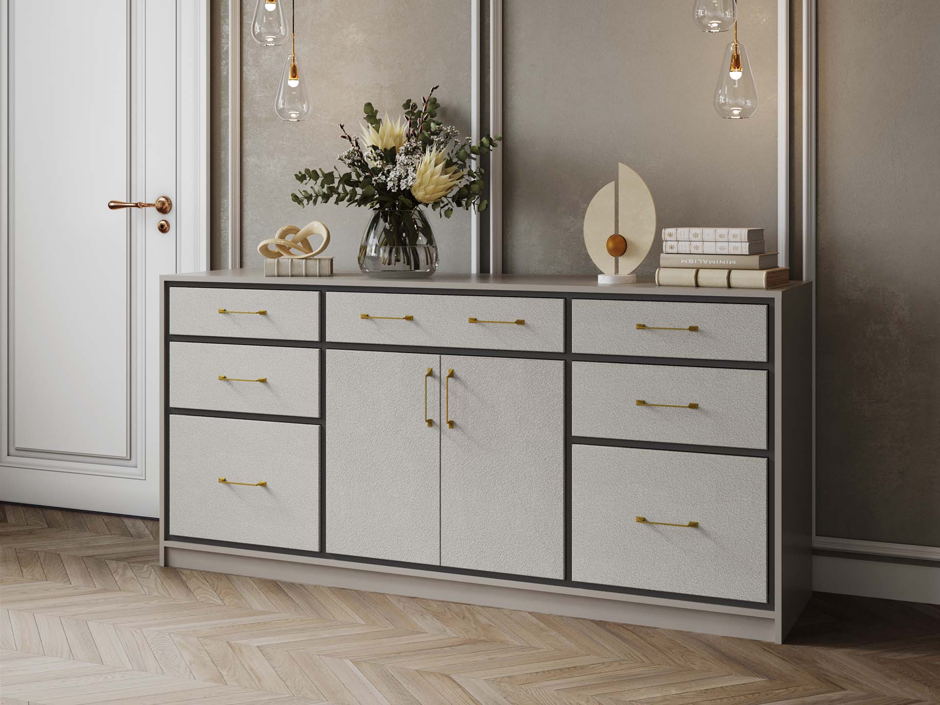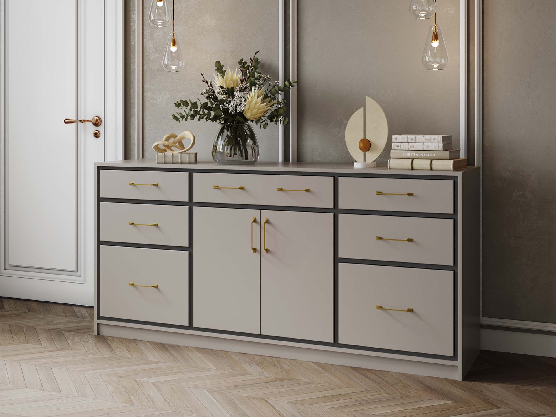 Вариант-10: ЛДСП Кашемир/МДФ ПВХ Лофт Капучино Акцентная кромка — Графит Серый