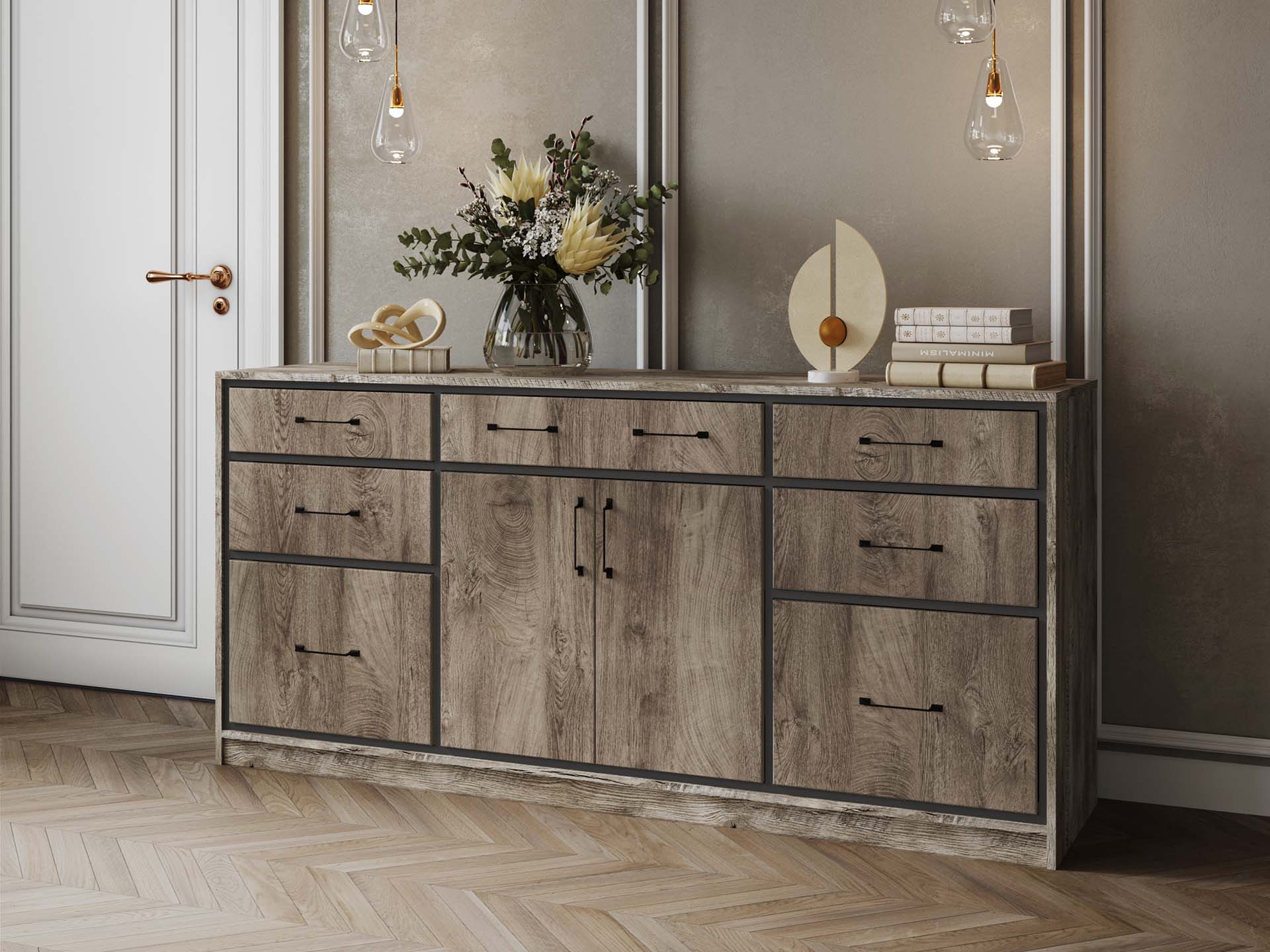 Вариант-3: ЛДСП Дуб Юкон/МДФ ПВХ Дуб Остин бежевый Акцентная кромка — Графит Серый