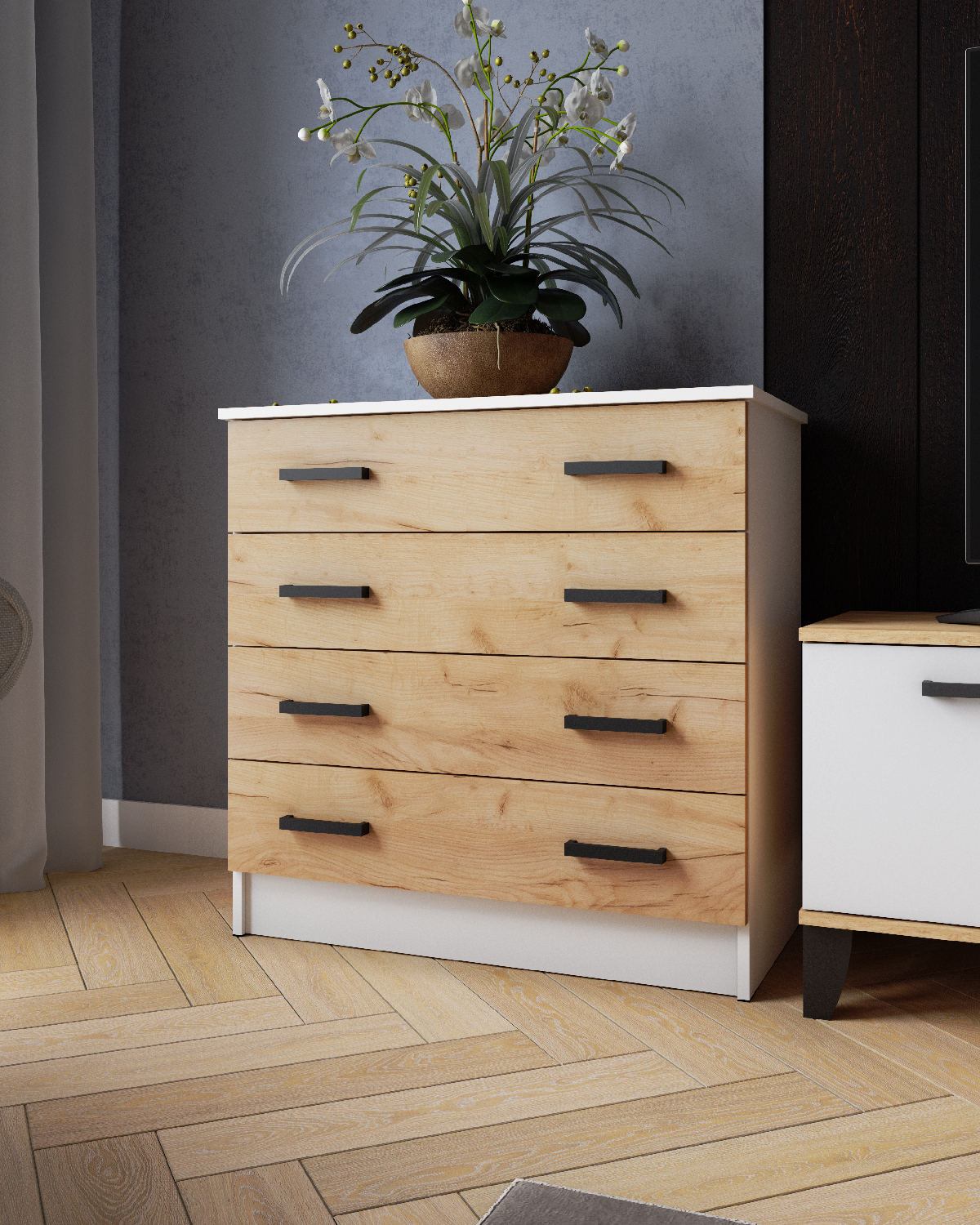 Вариант-1: Корпус ЛДСП Белый с тиснением «Древесные поры», Фасад ЛДСП Дуб Крафт Золотой