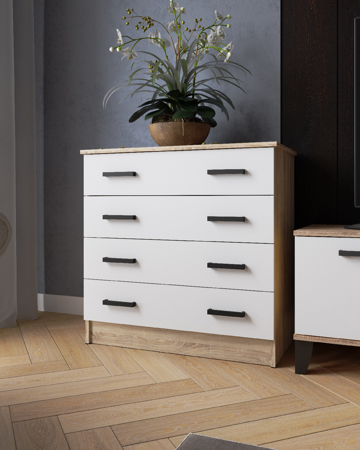 Вариант-2: Корпус ЛДСП Дуб Сонома, Фасад ЛДСП Белый с тиснением «Древесные поры»