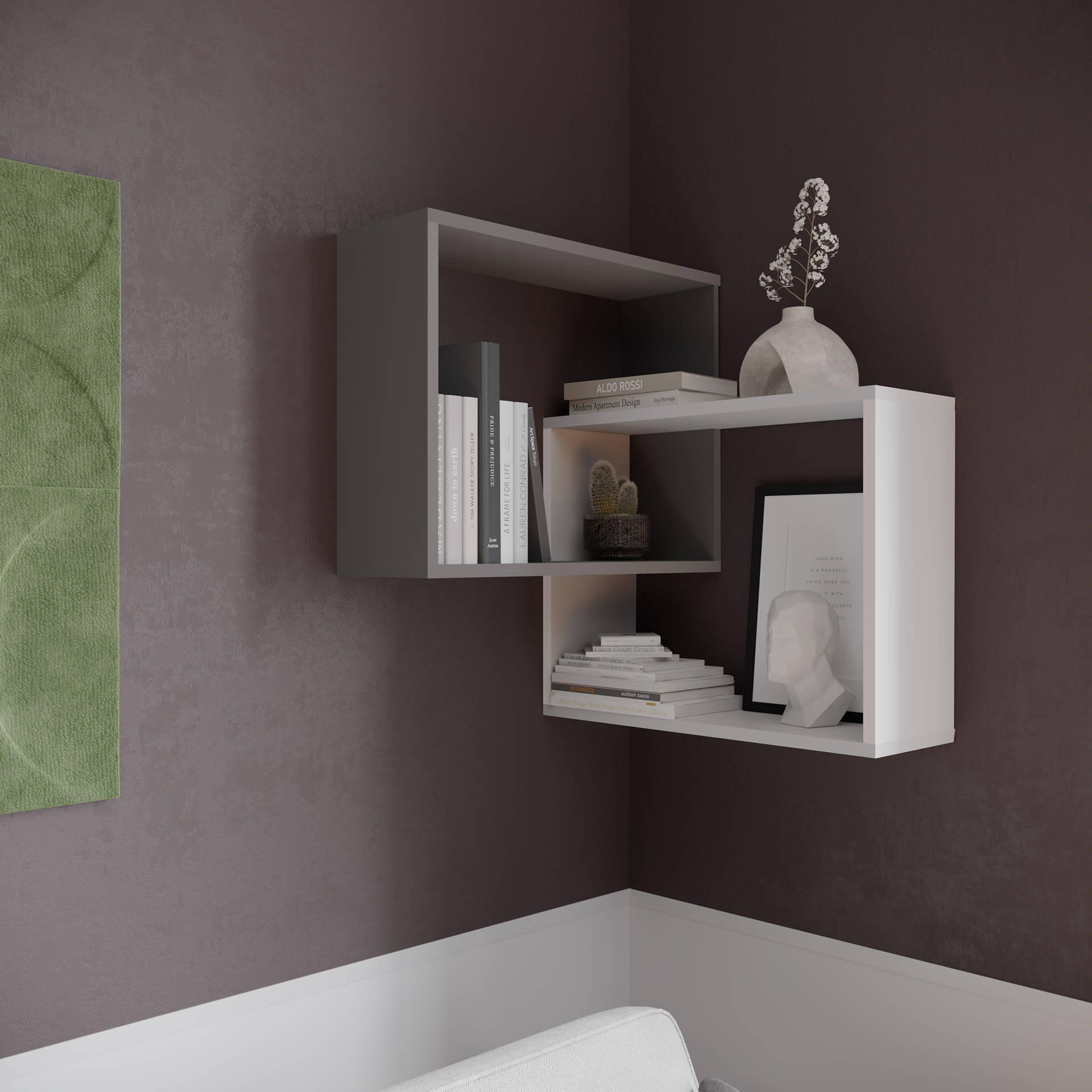 В комплект входят крепления для настенной навески, максимальная распределенная нагрузка на полку — 5 кг.