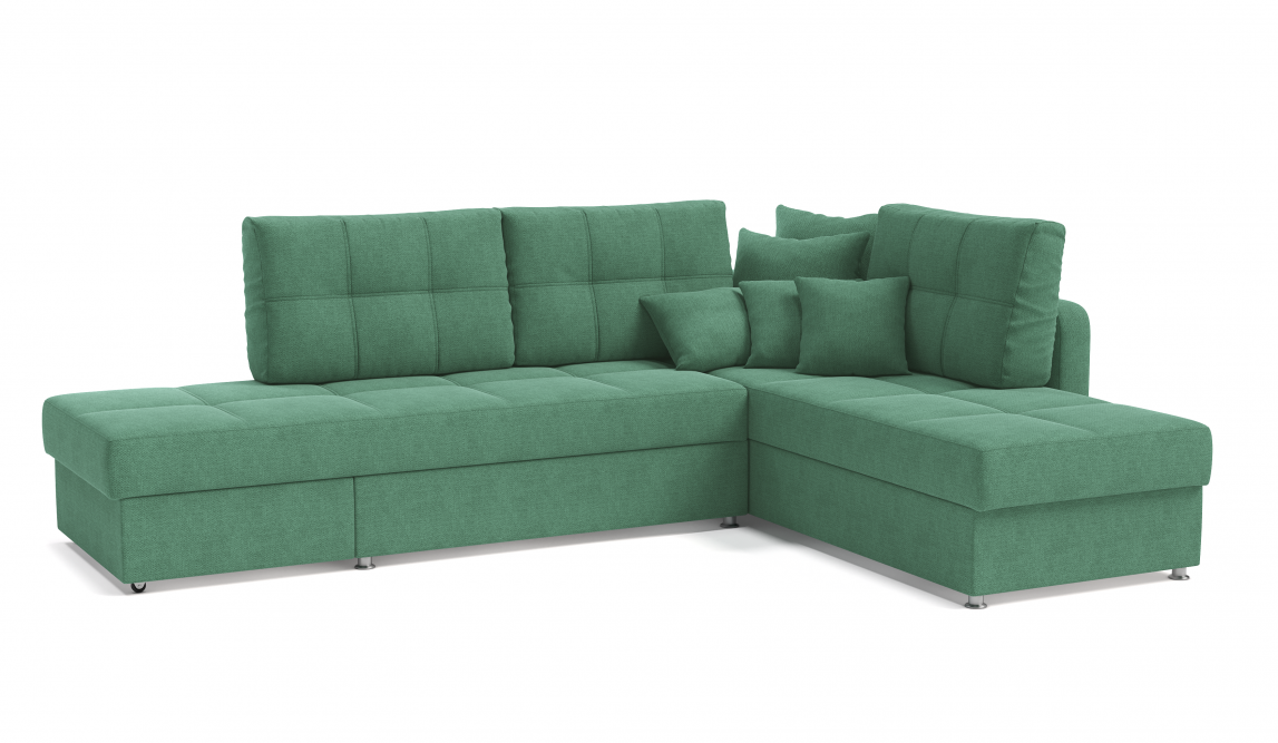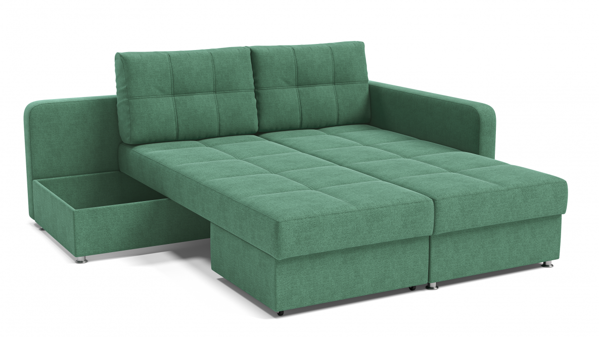 Красивый и яркий диван превращается в удобную двуспальную кровать с ортопедическим эффектом и прикроватным столиком.