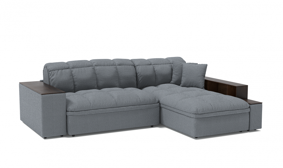 Диван выполнен в современном стиле и имеет практичную модульную систему, позволяющую трансформировать угол в широкую мягкую кровать.