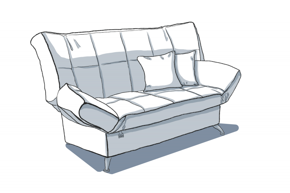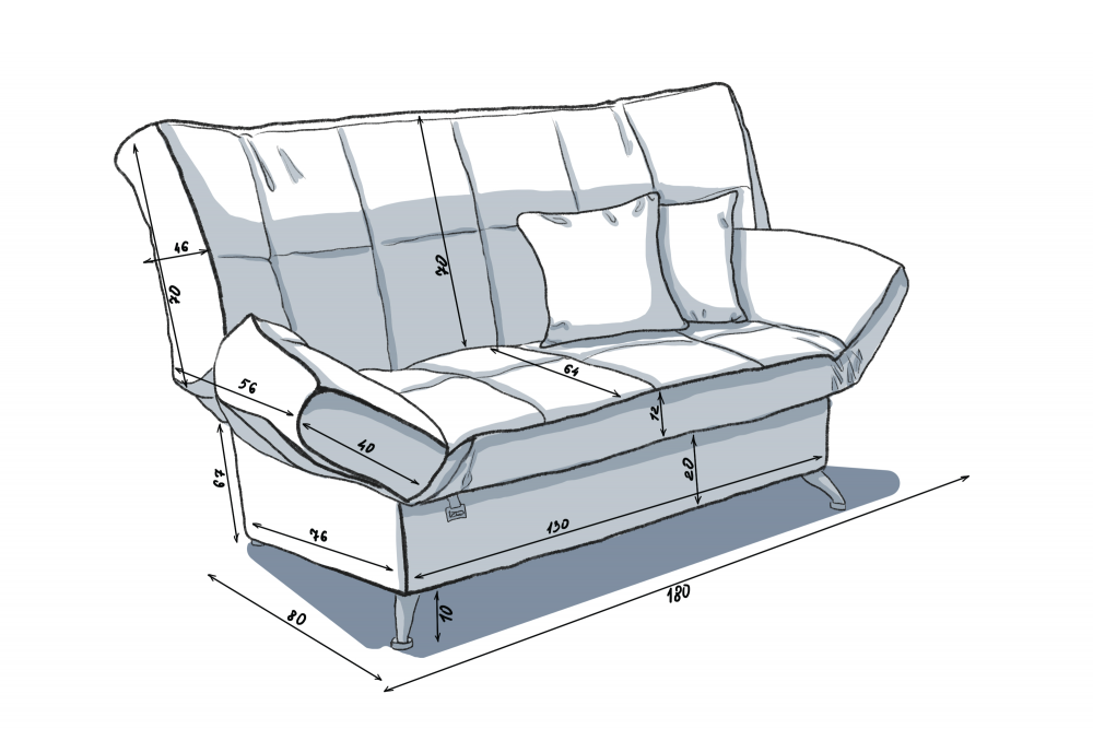 Все части механизма выполнены из прочного и надежного металла-нержавейки. Каркас дивана представляет собой рамы с ортопедическими ламелями, а в качестве наполнителя используется пенополиуретан и синтепон, что позволяет дольше сохранять формы посадки.