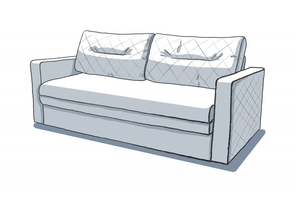Надежный и выносливый пошаговый механизм раскладки легко превратит диван в большую и комфортную кровать, что является залогом спокойного и здорового сна.