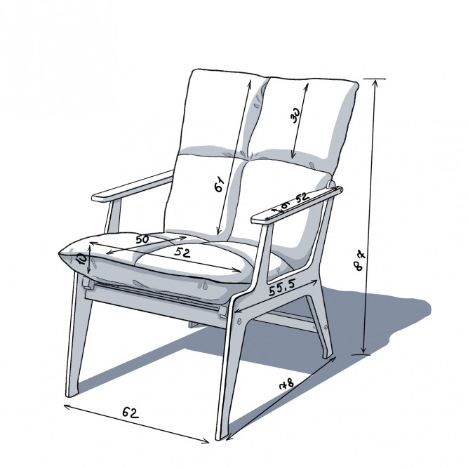 Каркас выполнен из березовой фанеры с покрытием водного лака – кресло с 3х позиционным механизмом выдерживает нагрузки до 130кг.